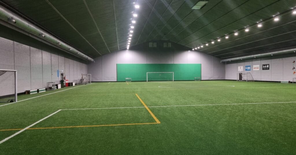 Jalkapallohallin valaistus toteutettiin Ledimo Oy:n kohteessa syväsäteilijöillä.